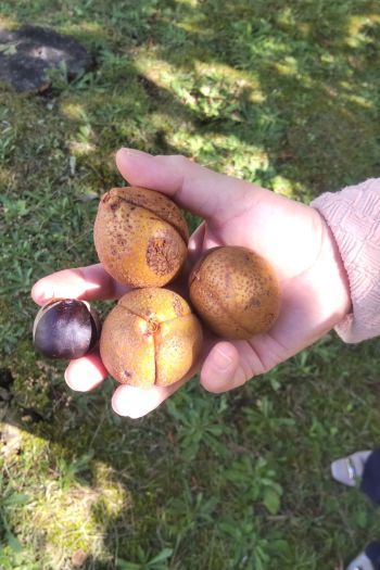青々としたカヤの実はフルーツのようなさわやかな香りがすると知ったわ。