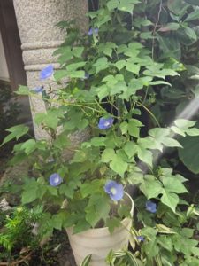 青くて小さい朝顔は毎年勝手に沢山出てくるのよ。