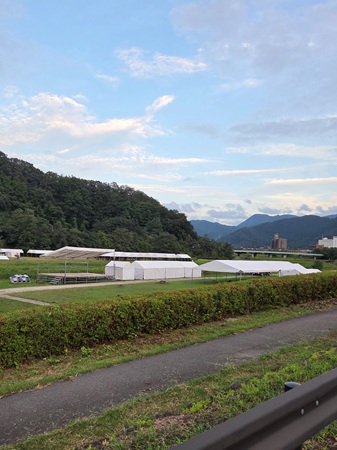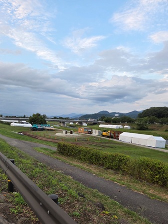 馬見ヶ崎川の両岸のそこここに白いテントが !!