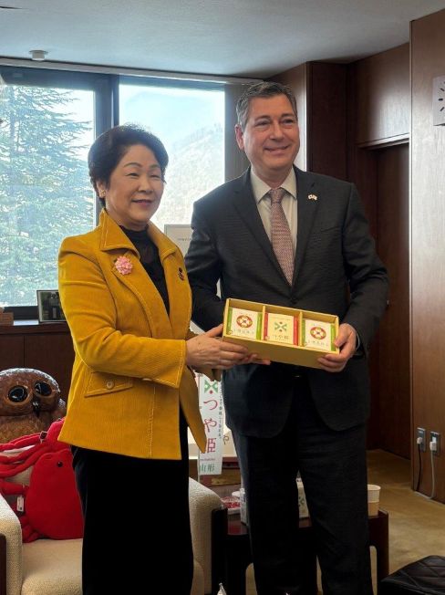 それで、大使に「山形県へようこそ。山形は米国のナショナルジオグラフィックから2026年に行くべき世界の旅行先25選の1つに選ばれたけど、今は1年で最も寒い時期。雪の多さに驚ろかれたでしょう」と話しかけました。