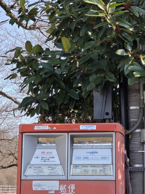 楽しい店主との語らいを終えて、帰宅の途についたんだけど、途中にハガキの木(タラヨウ)とポストがセットで配置されているのを見かけたり、八小の紅梅が咲いているのを発見したりして、充実した散歩となりました~。
