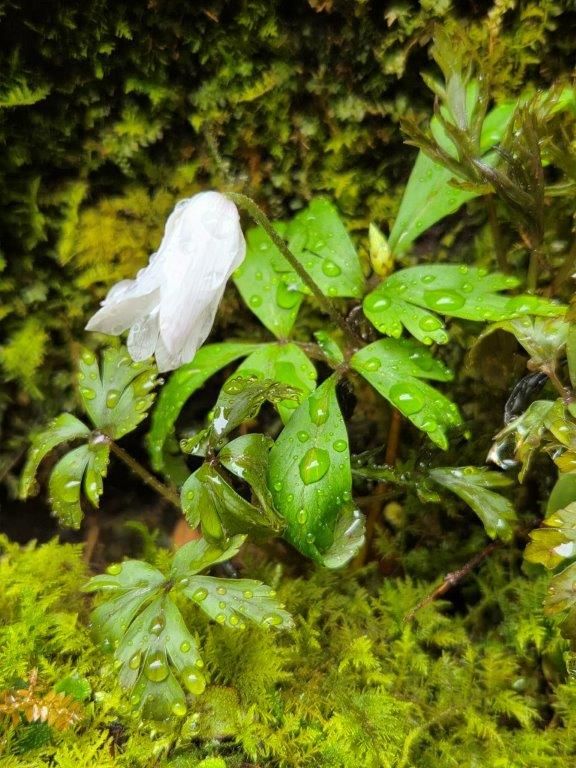 アラ、たった一輪キクザキイチゲもひっそりと咲いて・・・。